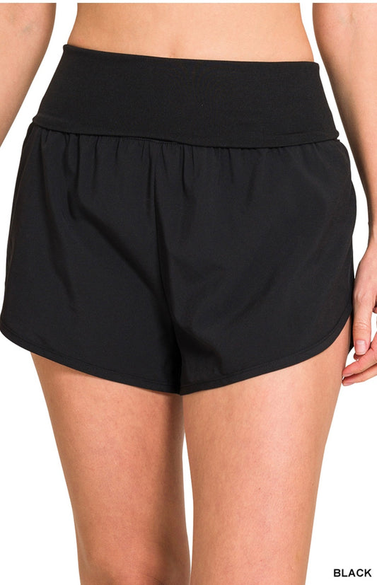 'On The Go' fold over shorts - BLACK